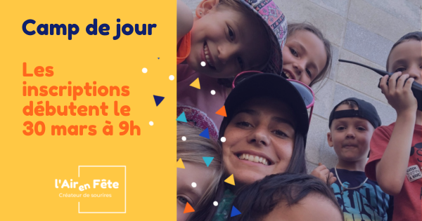 L'équipe de L'Air en Fête est fière de se joindre à la Municipalité de Notre-Dame-de-Lourdes pour vous proposer un camp de jour cet été.