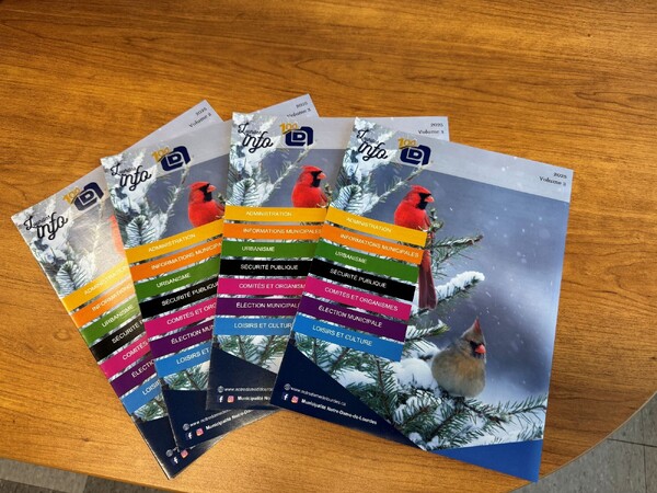 Vous recevrez un exemplaire via l'infolettre. Si toutefois vous désirez une copie papier, celle-ci sera disponible à l'hôtel de ville, au bureau de poste (Couche-Tard) ou à l'école.